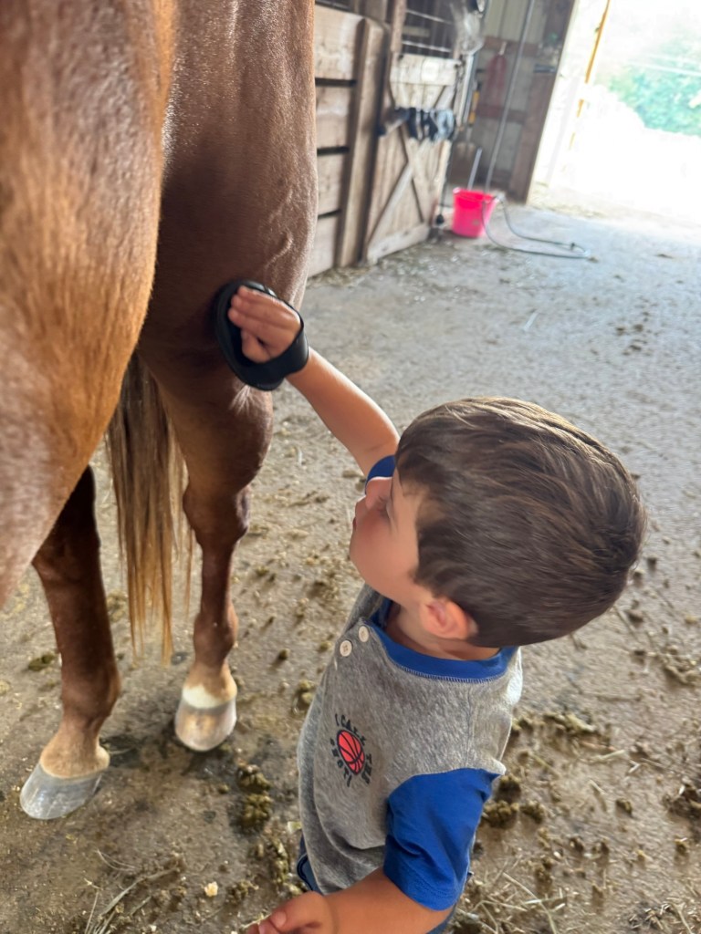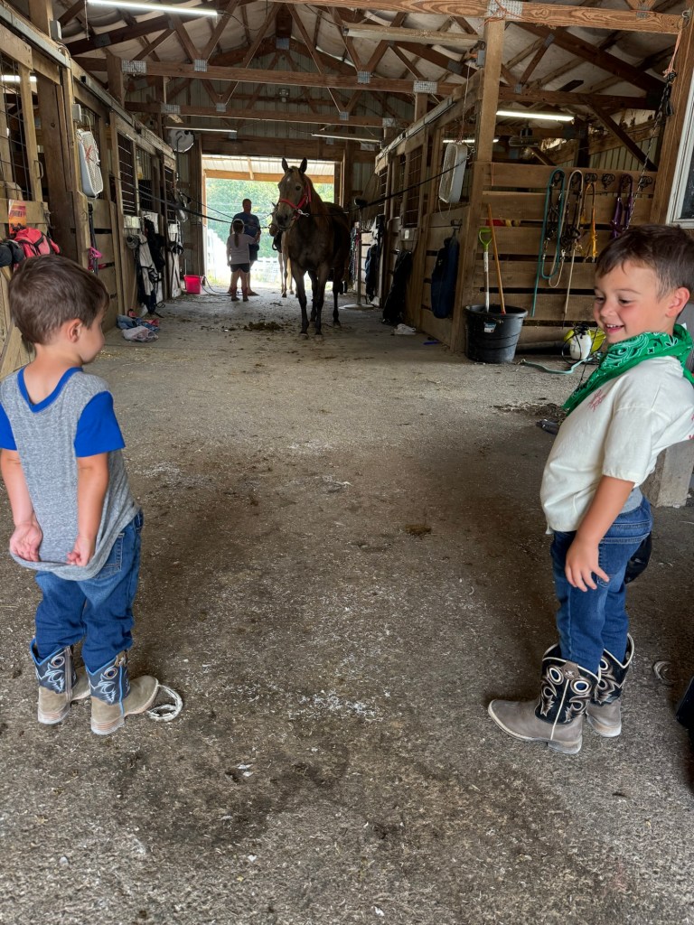 Today was your second horse lesson! Beckett trotted for the first time and turned Apple all on his own!