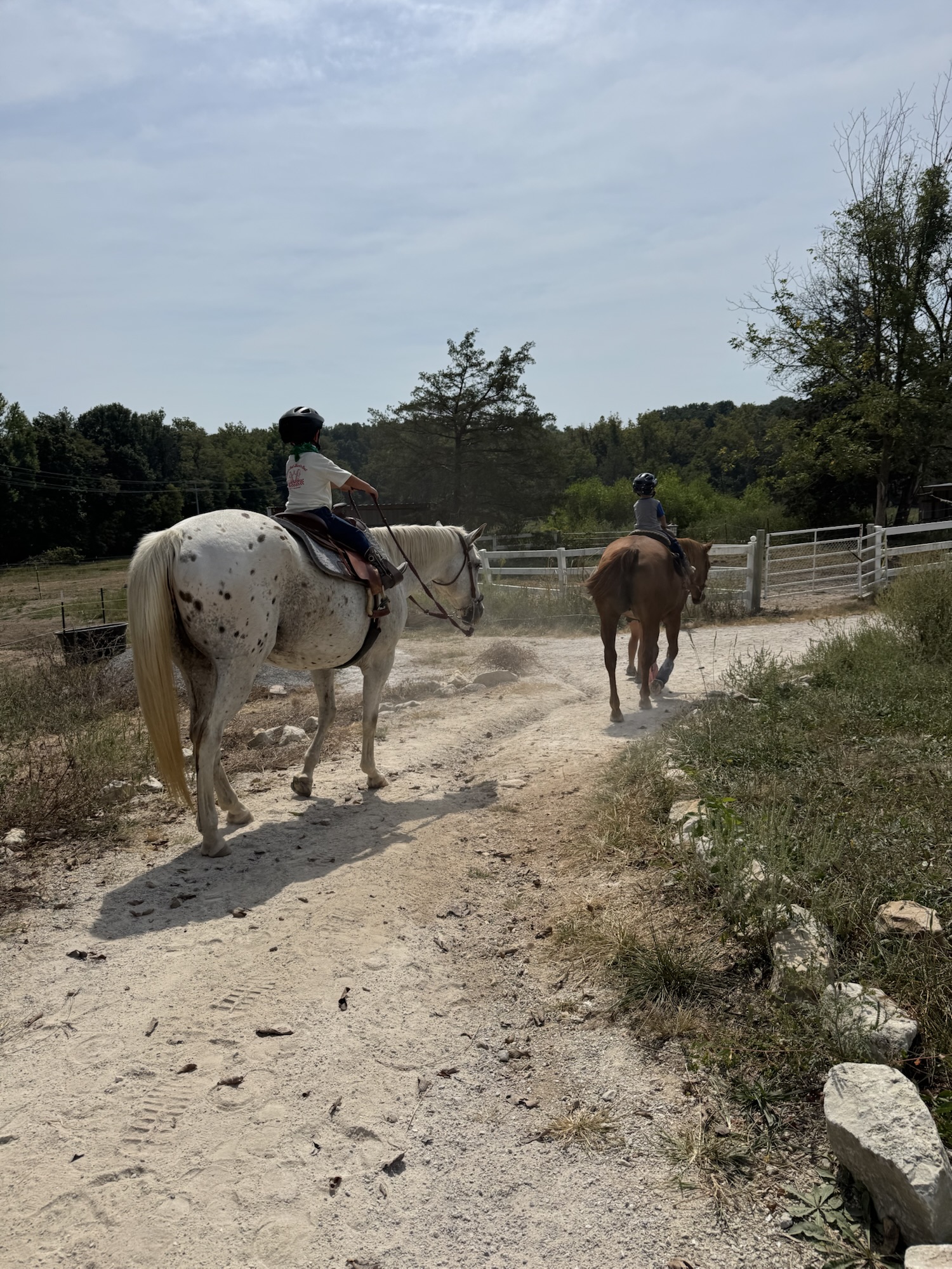 Today was your second horse lesson! Beckett trotted for the first time and turned Apple all on his own!